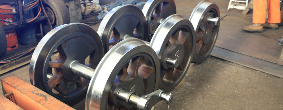 January 24th was a big day for the project. After months of work and a lot of planning it was a day of arrivals. Late morning the platework for the cab, tanks and bunker was delivered from CTL Seal, Sheffield. This was rapidly unloaded and positioned out of the way as shortly afterwards the big delivery of the day arrived. This consisted of the carrier frames which had been riveted over the last few months at Gilspel Engineering together with a surface grinder which had been purchased from the same company. The other part of the load was the arrival of the much anticipated delivery of the new wheel sets for the power bogie which had been collected from Statfold Engineering who had carried out the machining of these items.